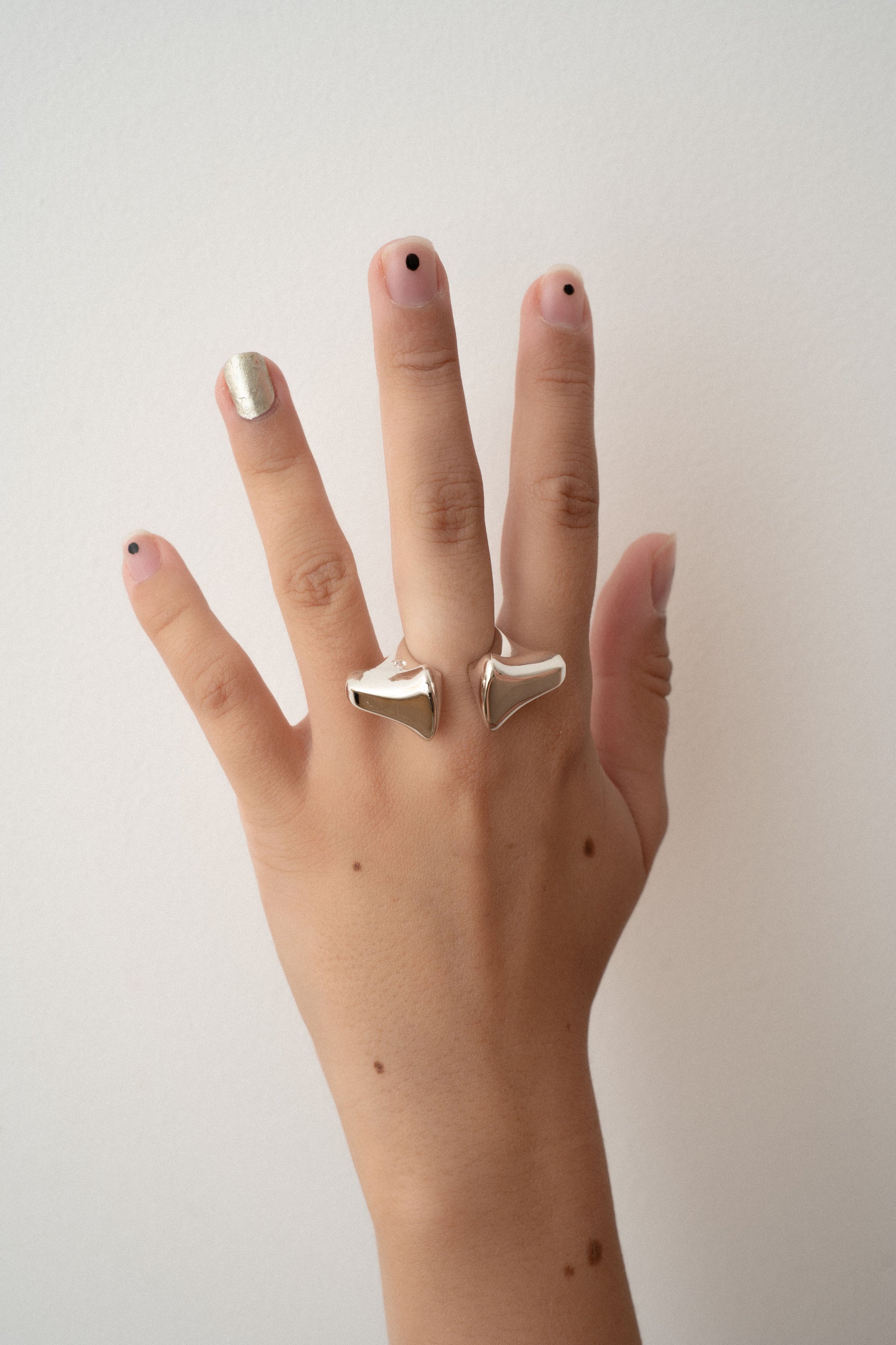 Each ring is a trace of what he saw and felt, from the organic motion of space-borne creatures to the fragmented ruins of a digital terrain. Sculptural and symbolic, they are wearable artefacts and art pieces of migration, memory, and transformation.