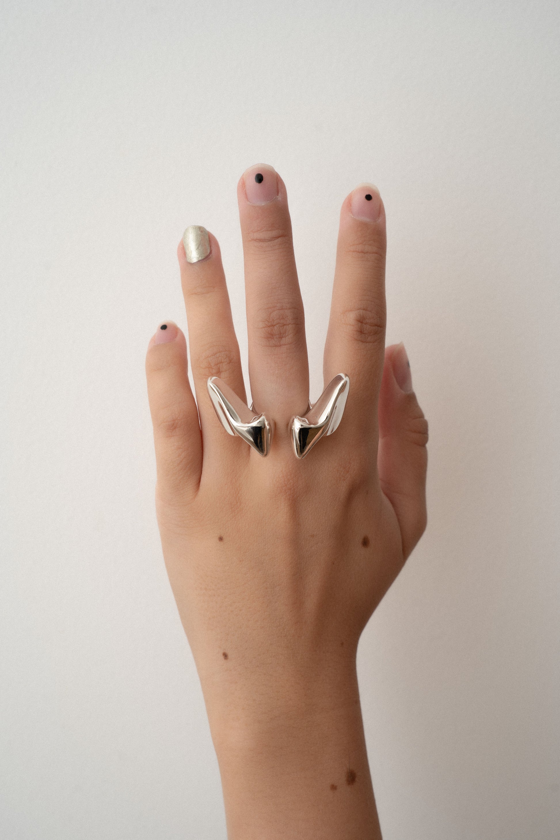 Each ring is a trace of what he saw and felt, from the organic motion of space-borne creatures to the fragmented ruins of a digital terrain. Sculptural and symbolic, they are wearable artefacts and art pieces of migration, memory, and transformation.