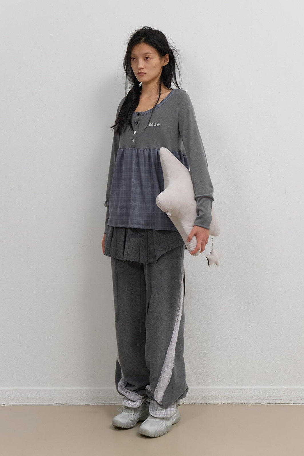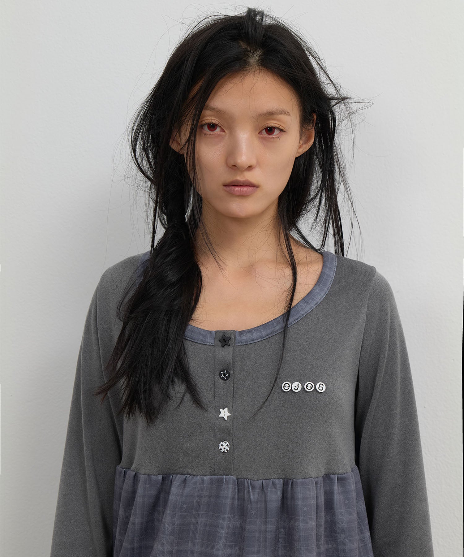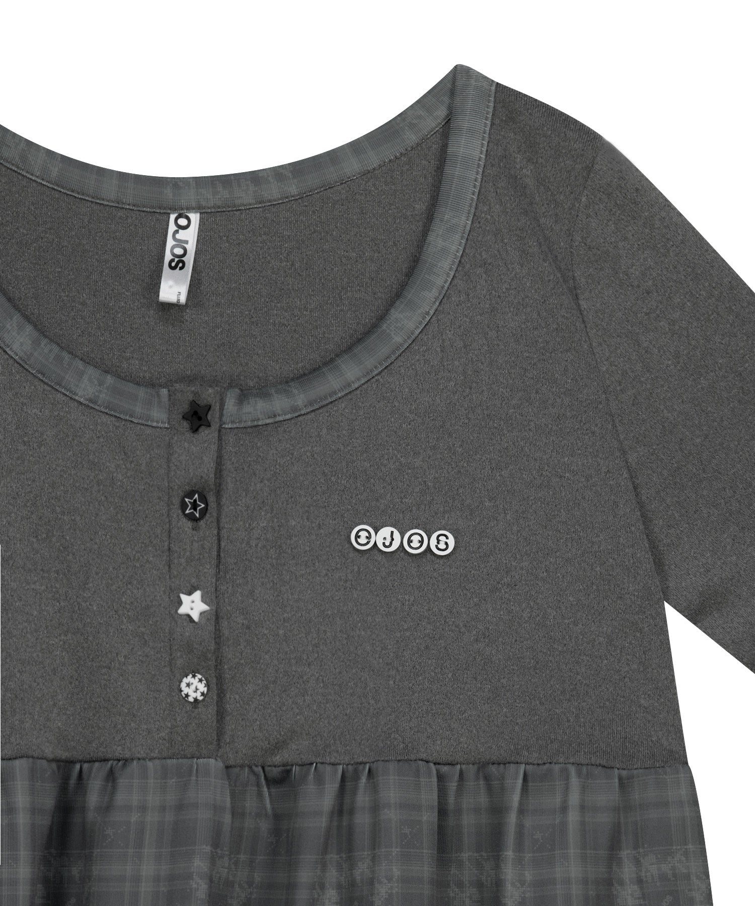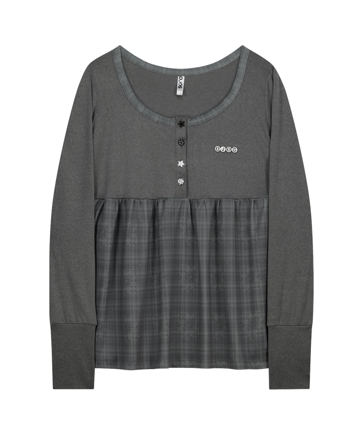 CHECK SLEEP LONG SLEEVE - CHARCOAL