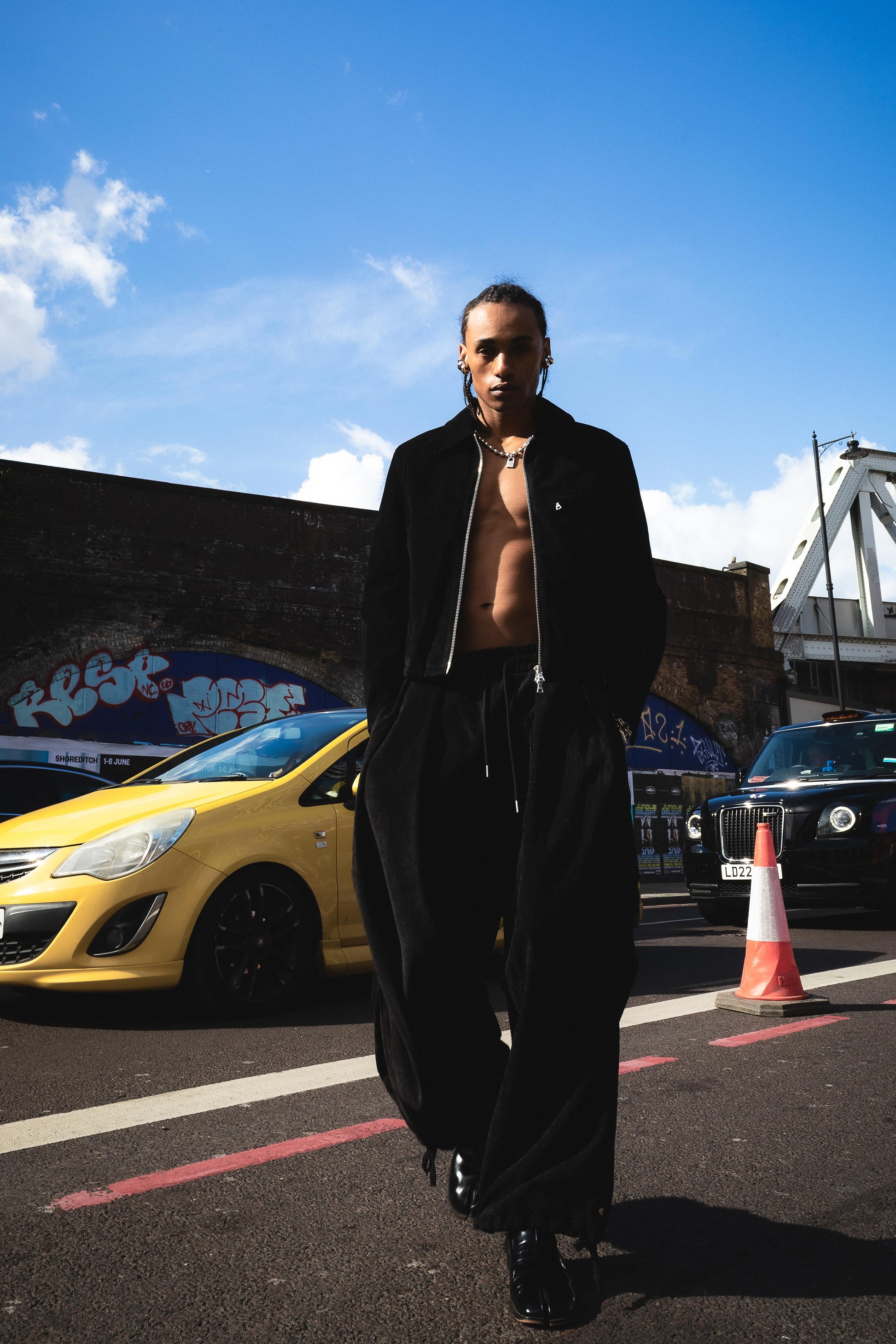 Subtle cargo-style pocket detailing adds depth and functionality, while the soft drape enhances movement. The adjustable elements create a dynamic silhouette, delivering a contemporary streetwear feel with a refined edge.