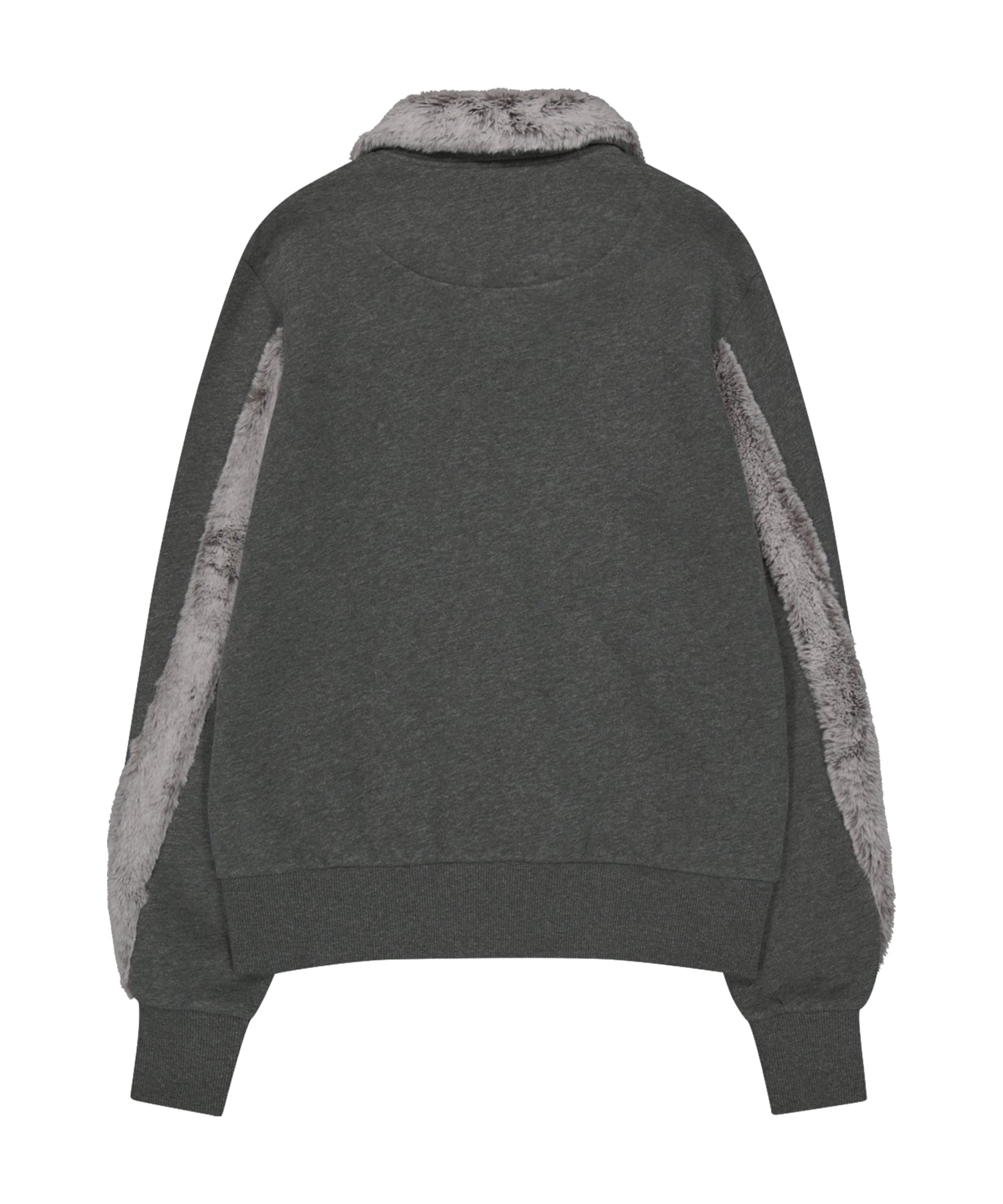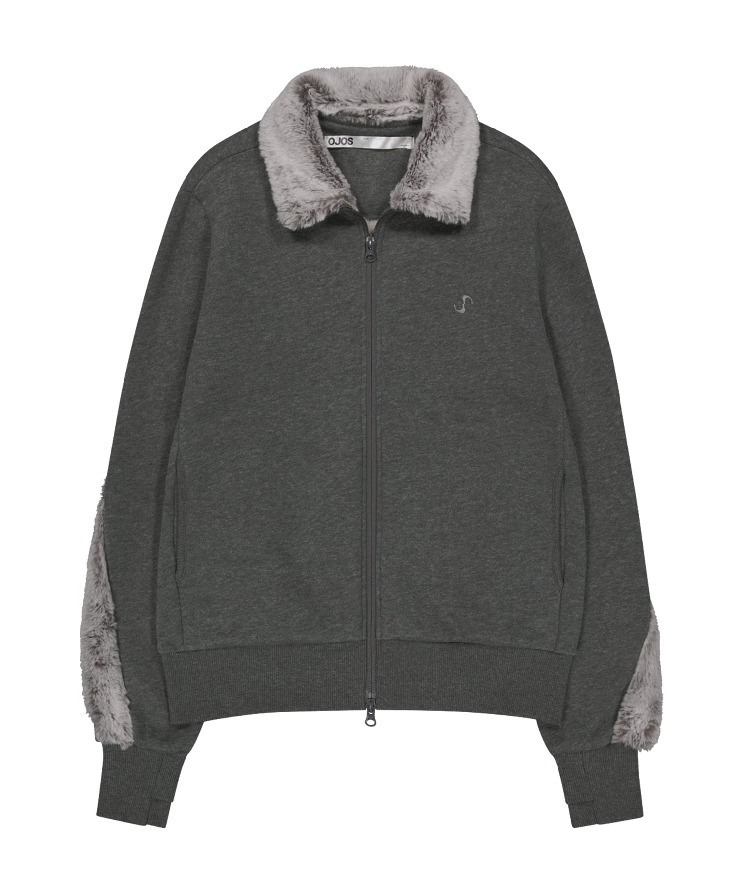 FUR TRIM JERSEY ZIP-UP - CHARCOAL