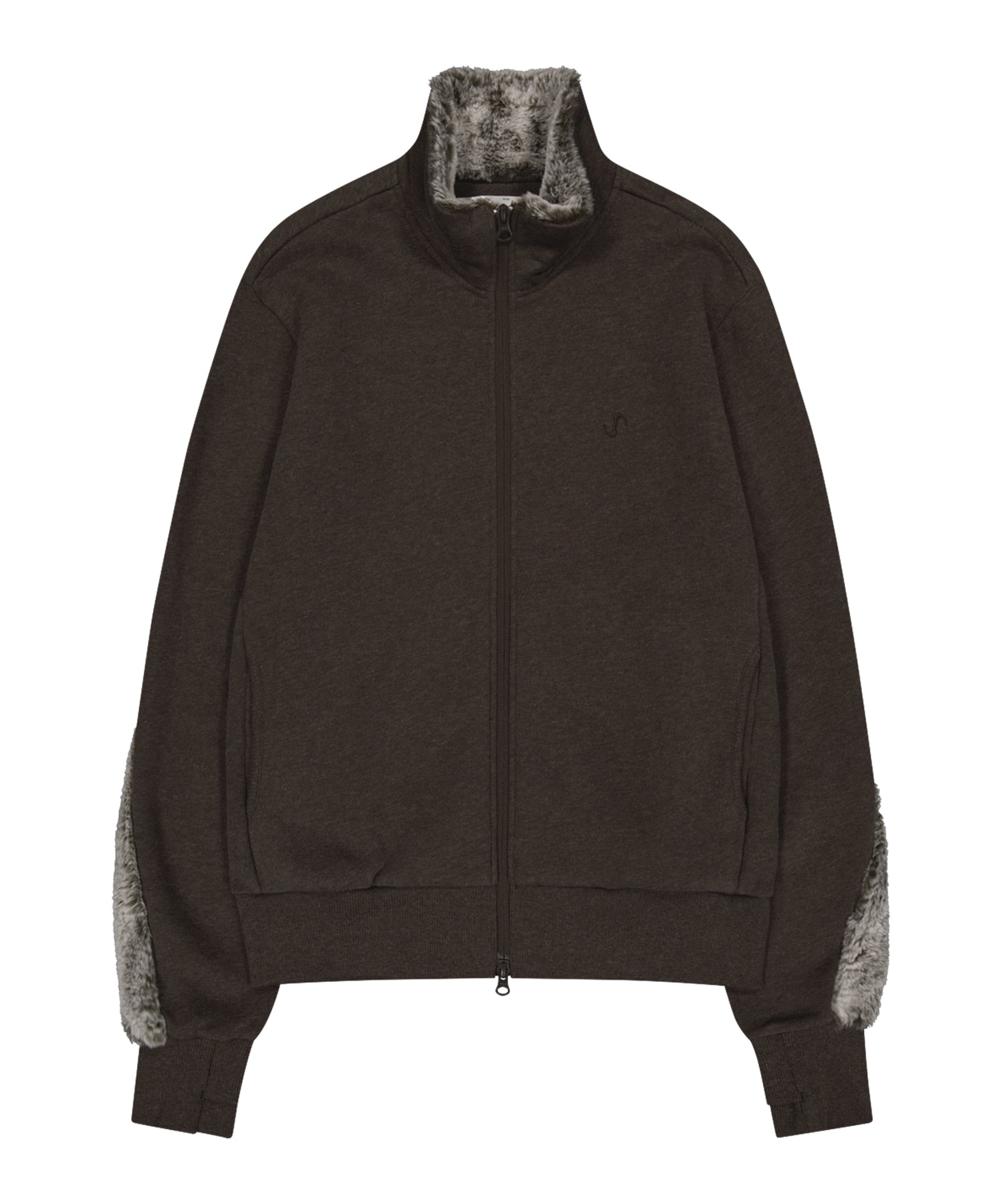 FUR TRIM JERSEY ZIP-UP - STONE BROWN