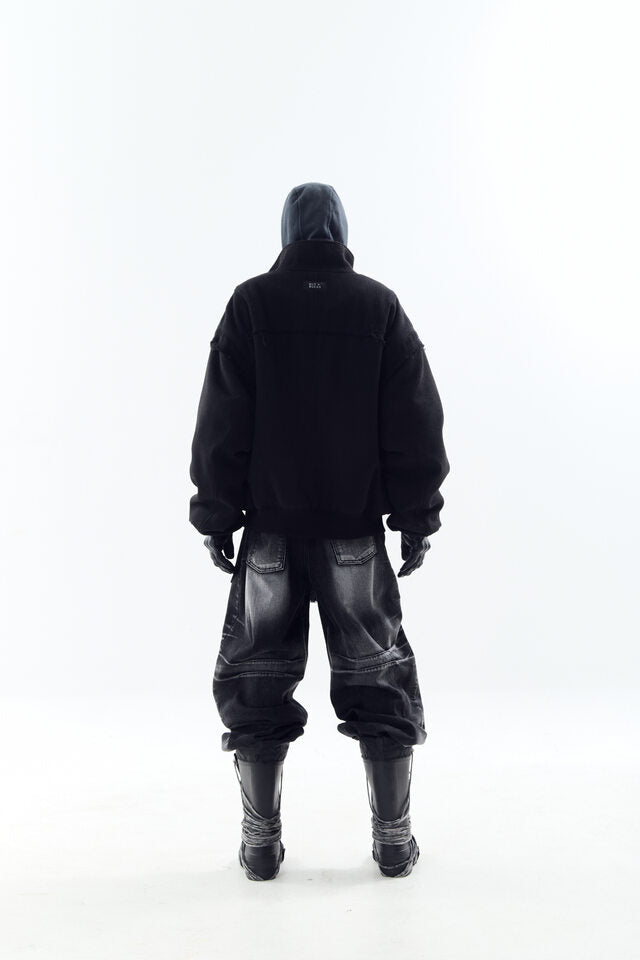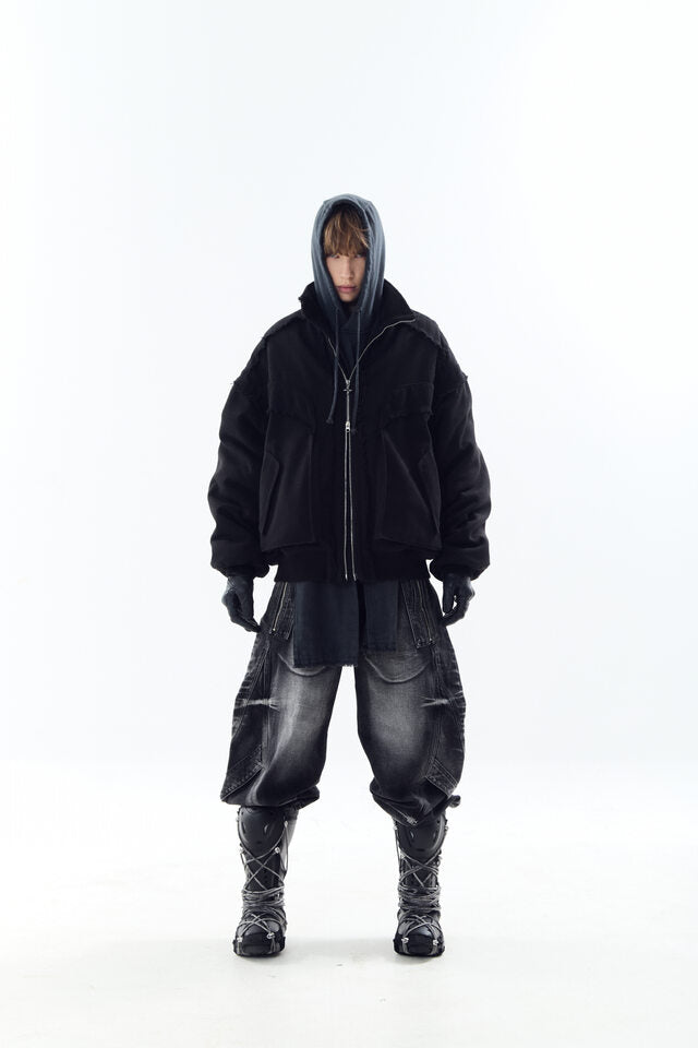 This thick jacket is made from a blended wool fabric for added warmth. Oversized pockets and the frayed cotton detailing add a sense of weight and texture, while the relaxed oversized fit and the premium BLR label on the back complete the look with a touch of sophistication.