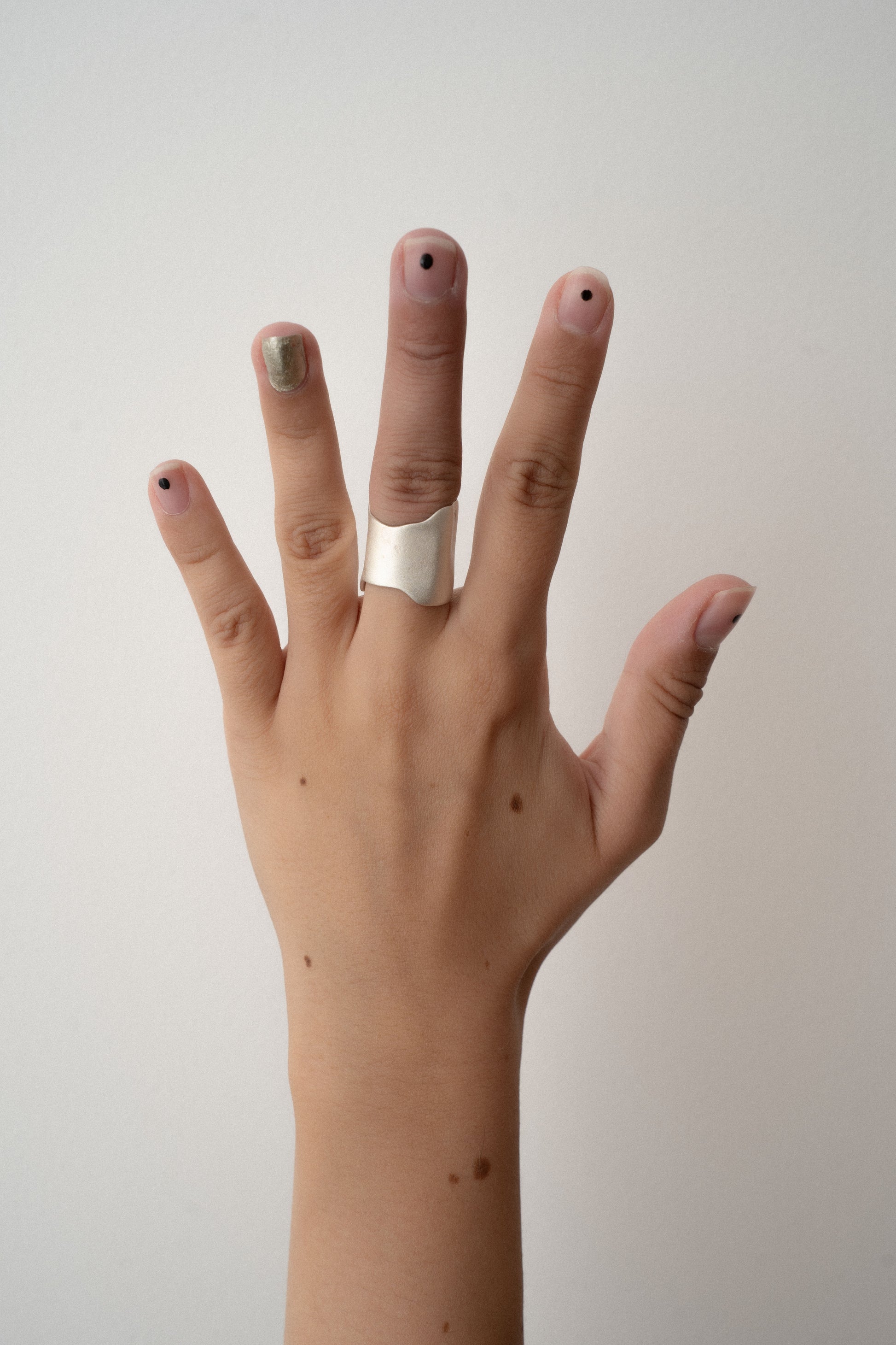 Each ring is a trace of what he saw and felt, from the organic motion of space-borne creatures to the fragmented ruins of a digital terrain. Sculptural and symbolic, they are wearable artefacts and art pieces of migration, memory, and transformation.