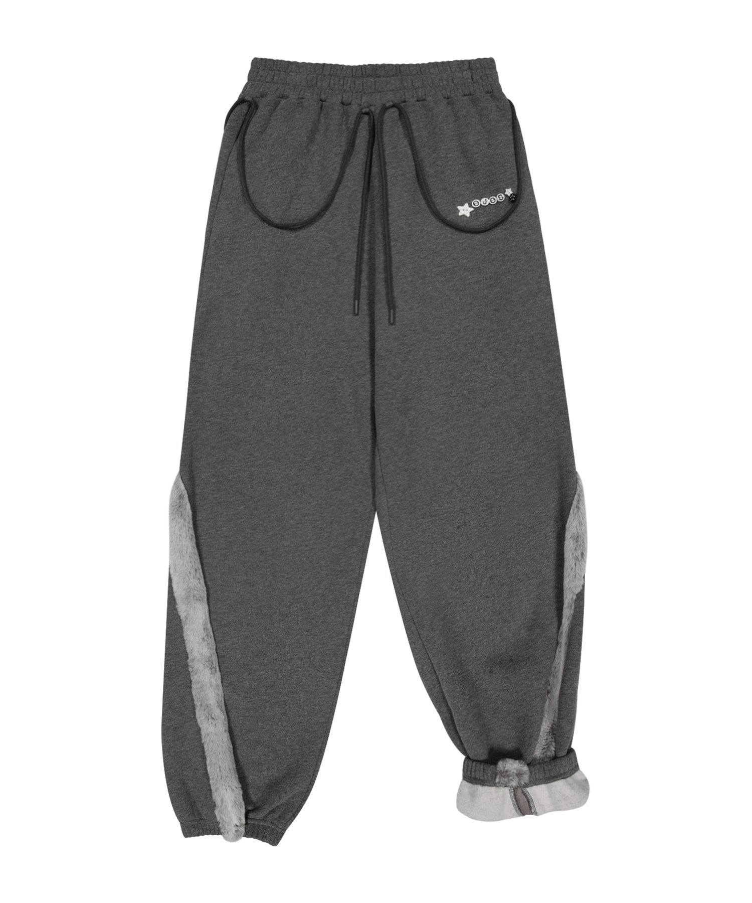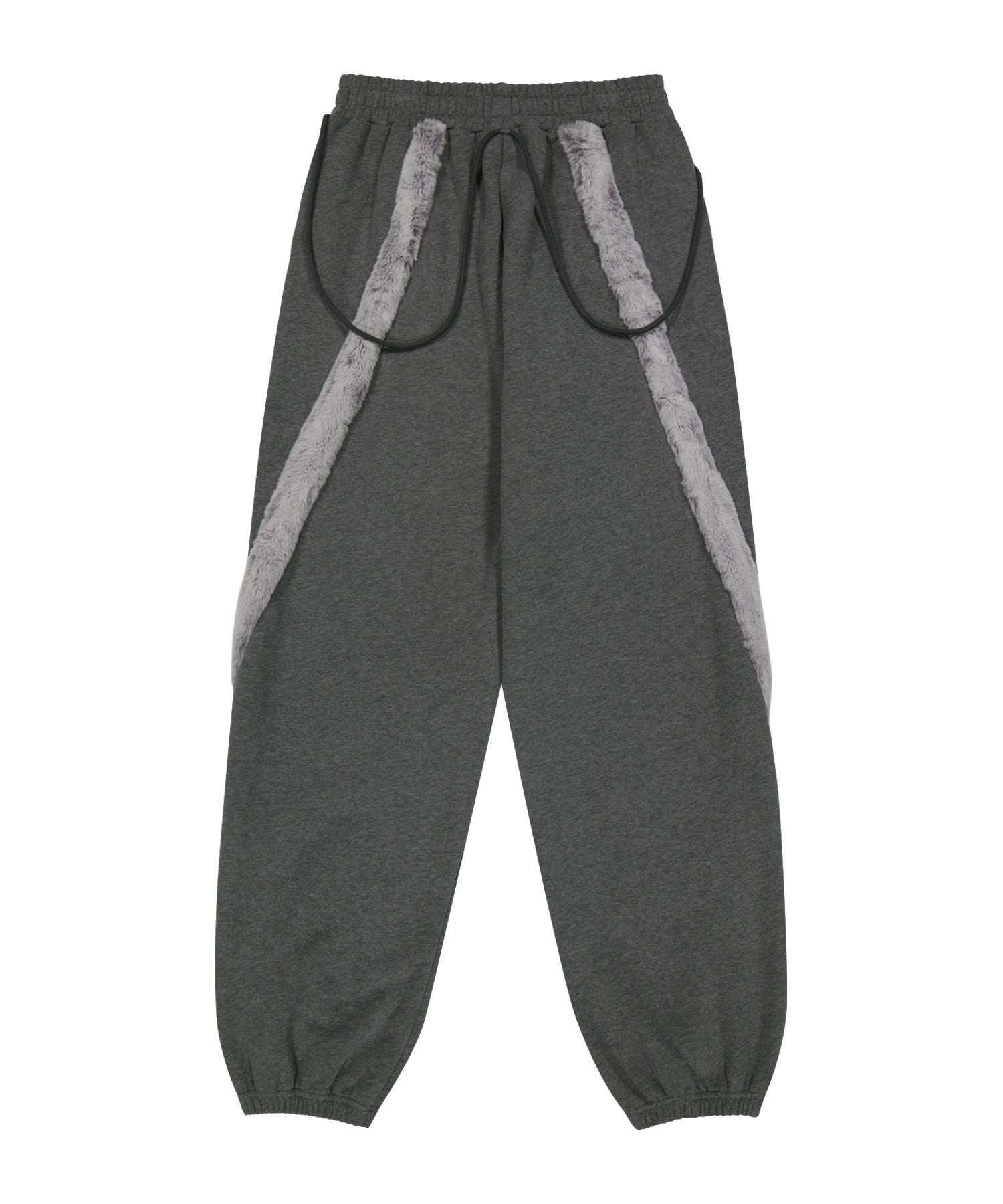 SIDE FUR TRIM SWEATPANTS - CHARCOAL