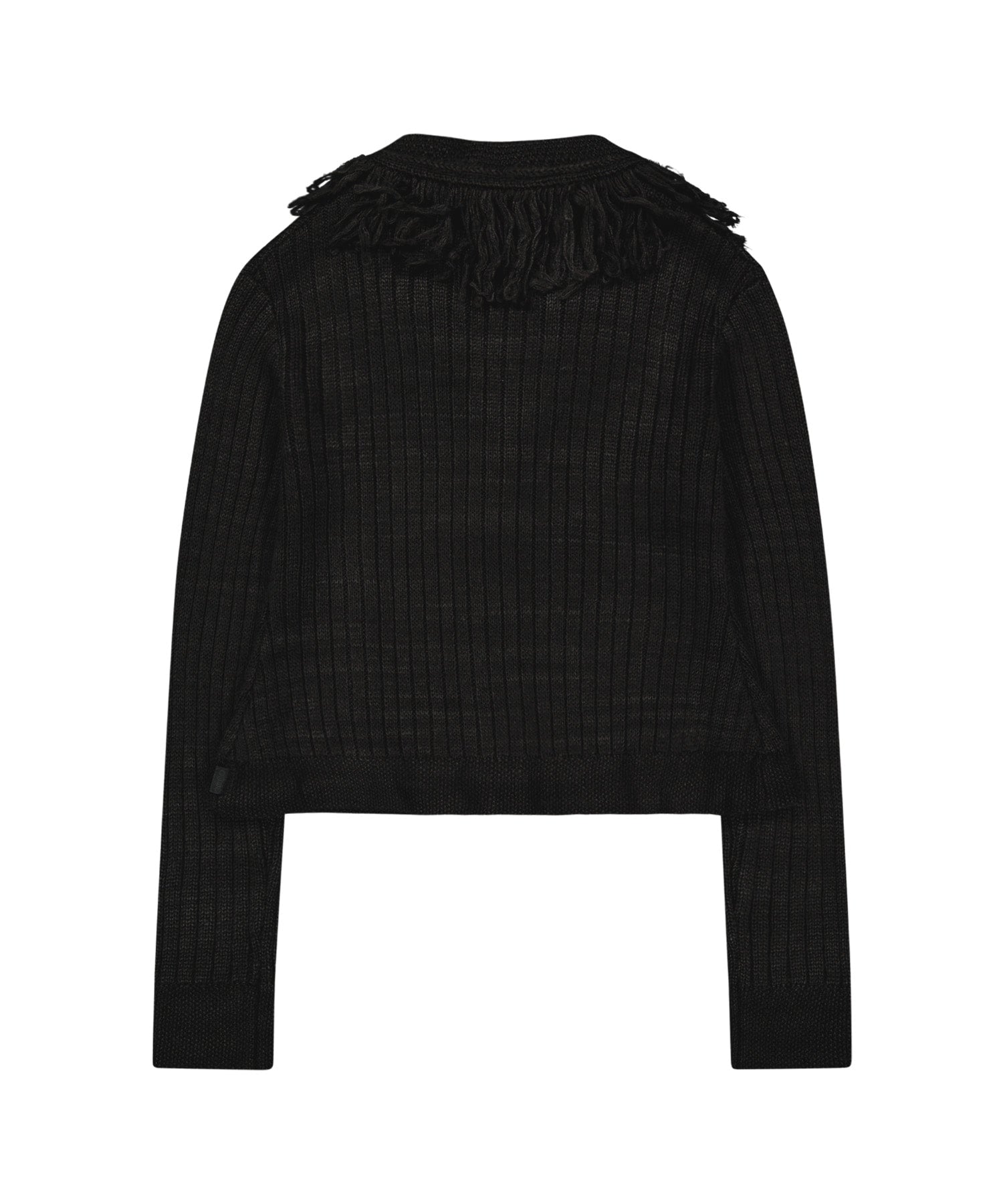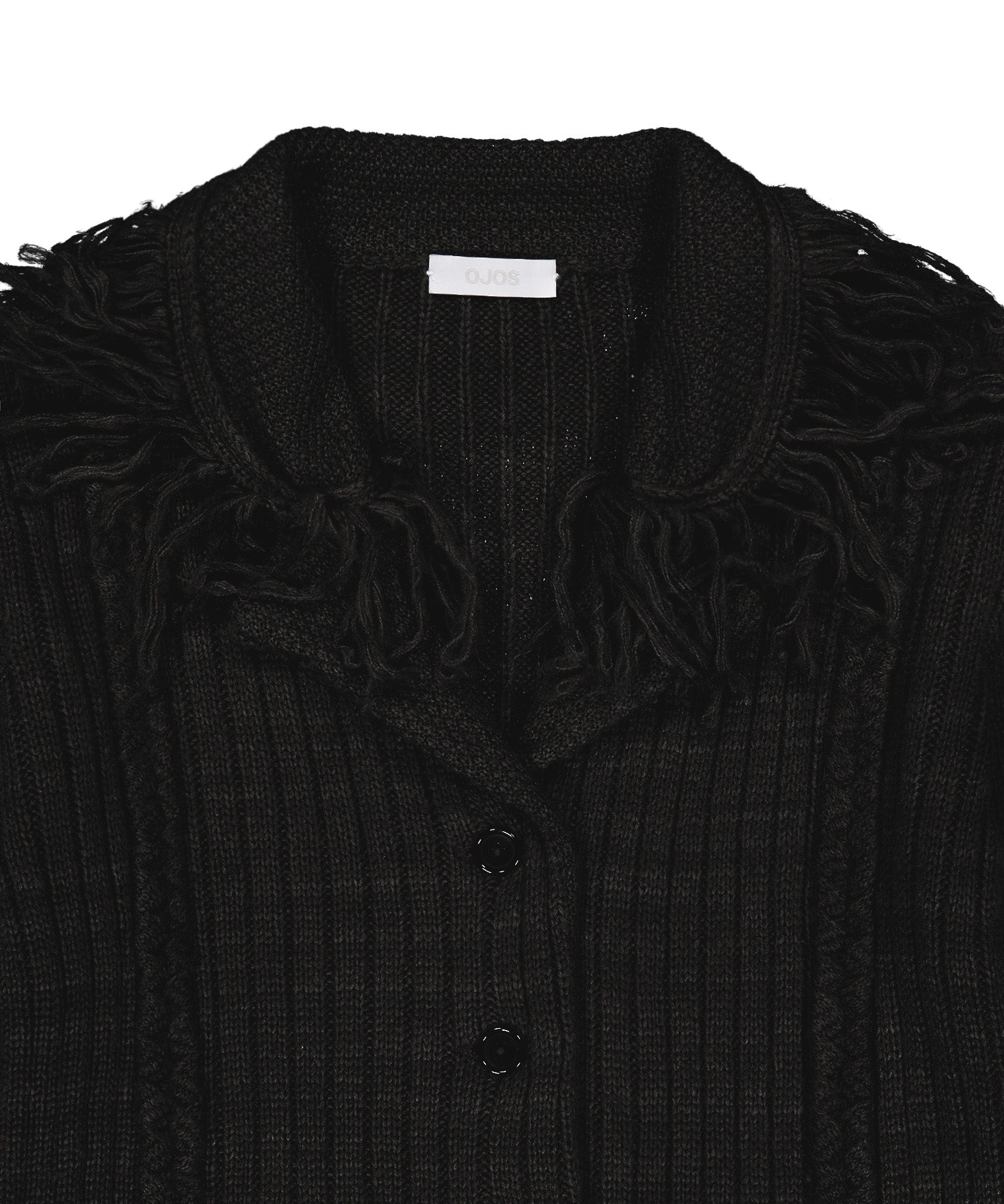 TASSEL COLLAR KNIT CARDIGAN - BLACK